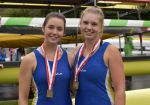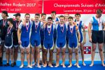 Médaille encore, en bronze, pour Sarah et Rebecca en 2- juniores, malgré une trajectoire déviante en fin de parcours: 0.05 seconde d’avance sur les quatrièmes, et c’est tout bon! Bravo à tous les CAVistes pour cette saison 2017, avec son lac Léman étonnement calme et ses régates arrosées. Bonnes vacances à toutes et à tous!