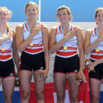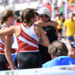 Menées sur la majorité de la course, les suissesses ont sorti le grand jeu sur les derniers mètres de la course afin de coiffer au poteau l’équipage allemand et l’équipage hollandais relégués respectivement à la deuxième et troisième place. Accompagnée de Célia Dupré, Jana Nüssbaumer et Lisa Loetscher, c’est donc avec un équipage mi-suisse allemand, mi-romand que la suisse a glané sa seule médaille des championnats du monde junior. Un grand bravo à Emma qui se voit récompensée pour ses entrainements acharnés de l’hiver sous l’œil toujours attentif de Pierre. Bravo aussi à Sarah McErlean qui réussit une belle 7 ème place avec l’équipe des USA en double.