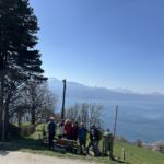 Le soleil était au rendez-vous, mais la bise aussi. Apéro devant le superbe tableau du bleu Léman. Bon accueil au resto de la tour de Gourze avec Roesti – croutes au fromage et autres. Bien sûr, il fallait de bons coups de pédales pour les montées et les freins ont chauffé à la descente.