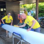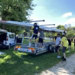 L’aventure a commencé à Vevey avec les participants et les moniteurs qui ont chargé les bateaux sur la remorque. Une fois les yolettes, doubles et le skiff sécurisés, toutes et tous ont pris la direction du canton de Fribourg.