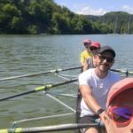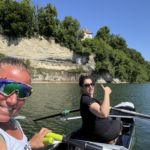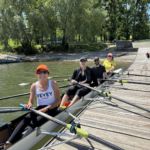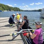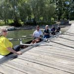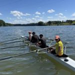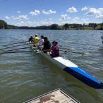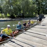 Le lieu de rencontre était à la cabane de Pensier au bord du lac avec un terrain entouré de verdure. Le lac de Schiffenen est artificiel et est idéal pour pratiquer l’aviron. Ses eaux sont calmes et plates. Après avoir monté les bateaux et échangé lors d’une pause-café, les équipes ont réalisé leur première sortie.