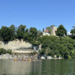 Les bateaux ont pris cette fois la direction opposée, la basse-ville de Fribourg, en passant par les grottes de la Madeleine, le pont de Granfey et pour certains celui de la Poya. Remonter la rivière de la Sarine à la nature sauvage créait des airs d’Amazonie. Encore quelques coups de rames, des perfectionnements de mouvements et tous rentraient à la cabane, puis vers Vevey en fin de journée.