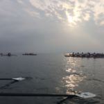 Lundi 21 septembre: Une petite idée avait germé dans la tête de quelques rameuses: pourquoi ne pas ramener les yolettes à la rame depuis Lausanne? Après consultation de la météo, cinq joyeuses sportives se sont lancées dans la course pour rapatrier le Mikad’eau! Parties à 9h00 en train d’abord, puis en bus, puis à pied pour rejoindre le RCL, nous avons accosté le ponton de Vevey à 12h50! Découvrir la rive entre Lausanne et Cully fut une magnifique expérience! Et puis cette sortie aura au moins eu le mérite de secourir une rameuse de Pully en fâcheuse posture puisqu’elle avait fixé ses rames sur des tolets tournés du mauvais côté! Heureusement que les rameuses du CAV étaient là! 😀