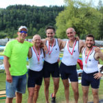 Résultat: de l’or pour Bill en skiff master. De l’argent pour Florent/Alexis en 2- pl, pour Hugo/Richard/Léo/Nelson/Taymour/Kian/Mads/Micha/Nicolas en 8+ cadet et Max/Craig/Jeroen/Ludo en 4x master. Du bronze pour Emma en skiff juniore, pour Hugo/Richard/Léo/Nelson en 4- cadet, tout comme pour l’inoxydable Jean-Pierre en skiff vété. En ajoutant les places en finale pour les minimes en 4x et en 2x (filles et garçons), les juniores en 2x ainsi que les seniors en 2- et en 4-, on arrive à un bilan diabolique, arrosé au retour comme il se doit !!! Bravo à tous les athlètes, entraîneurs et aides diverses, on continue comme ça !