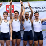 Ambitieux tout comme l’ont été les seniors hommes qui se sont inscrits en 2- et en 4-. Deux courses au suspense intenable avec des finish spectaculaires qui ont permis à Nicolas, Seric, Romain et Raphaël de faire champions Suisses en 4- et 2 heures plus tard de refaire le même exploit pour Nicolas et Seric en 2-. Après 2014, nous voilà de retours avec 2 drapeaux!