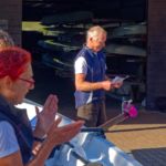 Carla, la marraine du double loisir fraichement acquis par le club, nous a révélé le nom de cette nouvelle embarcation: Libellule. Un choix poétique pour un bateau qui nous permettra de naviguer à deux, en toute sécurité sur un lac agité. Ce baptême à la bière Boxer a ouvert les feux de l’apéritif, après quelques recommandations de navigation d’hiver distillées par Geneviève.