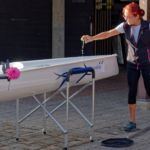 Je suis ravie d’avoir l’honneur de baptiser Libellule! D’abord parce que c’est un chouette bateau. Merci à notre comité de l’avoir choisi. Ensuite parce que Libellule c’est un chouette nom, qui sonne bien. C’est Christiane qui l’a choisi, sans aucune arrière-pensée, je crois, juste parce qu’elle trouvait joli, et elle a eu raison. En plus, une libellule, c’est élégant, mobile et gracile, son ombre au-dessus de l’eauressemble à s’y méprendre à celle d’un double d’aviron.