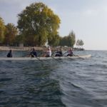 A la deuxième course, Jef n’était pour une fois pas à la barre du Diabol’eau qui joue l’anguille et José Luis n’y peut rien. Le diable à l’eau finira déclassé, ce qui vaut la deuxième place au Dauphin. A n’y pas croire, mais c’est la coupe de la salée… Régula et Pierre accompagnent Mathieu à tour de rôle sur le Dauphin, Manu sera un peu mouillée sur le flanc droit, le lac étant un peu agité aujourd’hui et Audrey et Frédy sont chevillés au Yoyo.