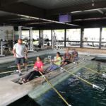 Le COVID 19 n’aura pas eu raison du cours d’initiation à l’aviron 2020. Encadrés par une vingtaine de moniteurs, 40 rameurs novices ont répondu présents aux nouvelles dates reportées sur juin et juillet. Ils se répartissent dans 4 groupes: Cours A, cours B, cours C et cours D. Vous les voyez à l’œuvre sur les photos ci-dessous et le lac est beaucoup plus capricieux pour les cours en soirée que ceux du matin et du we.