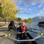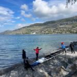 Au terme des 10 modules d’apprentissage, chaque participant devrait avoir acquis les bases du coup d’aviron. Un groupe a pourtant déjà testé l’accostage sur la grève du Jardin Doret à Vevey ! Quel zèle dis donc… !