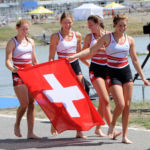 Menées sur la majorité de la course, les suissesses ont sorti le grand jeu sur les derniers mètres de la course afin de coiffer au poteau l’équipage allemand et l’équipage hollandais relégués respectivement à la deuxième et troisième place. Accompagnée de Célia Dupré, Jana Nüssbaumer et Lisa Loetscher, c’est donc avec un équipage mi-suisse allemand, mi-romand que la suisse a glané sa seule médaille des championnats du monde junior. Un grand bravo à Emma qui se voit récompensée pour ses entrainements acharnés de l’hiver sous l’œil toujours attentif de Pierre. Bravo aussi à Sarah McErlean qui réussit une belle 7 ème place avec l’équipe des USA en double.
