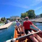 Car ramer en pointe, c’est non seulement remonter aux origines de l’aviron, en particulier à bord de la Janie, mais c’est aussi pratiquer une technique de rame différente qui requiert un niveau convenable de tous les rameurs afin que le bateau aille droit ! Et c’est bien là que ça se corse ! Car sur Toupie, le nouveau double large du CAV monté en pointe qui porte si bien son nom, les participants ont bien compris l’importance d’équilibrer leurs forces pour maintenir le cap ainsi que l’utilité du barreur, surtout au début !