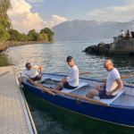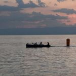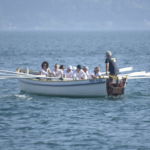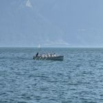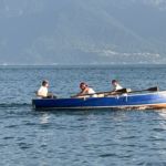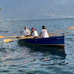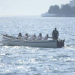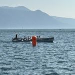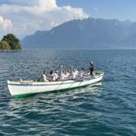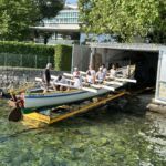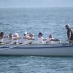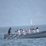 Géant presque centenaire (construction en 1927), la baleinière Sentinelle III a besoin de 8 rameuses/rameurs pour lancer, sur les 600 mètres du plan d’eau, ses 1300 Kg de bois de mélèze.