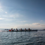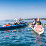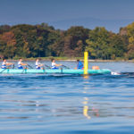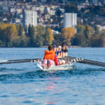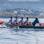 Le samedi 16 octobre a eu lieu la régate « Léman sur Mer ». Léman sur Mer est une nouvelle régate de 6km en bateau d’aviron de mer avec un départ à la volée et des bouées autour desquelles tourner, comme en voile. Le barreur a donc autant de travail à faire que les rameurs. C’est la seule régate en Suisse où les rameurs se réjouissent de sentir le vent et de voir de la vague en arrivant sur le champ de course. Une fois n’est pas coutume, le Léman était assez calme. Pour une fois qu’on aurait aimé le voir agité comme si souvent…
