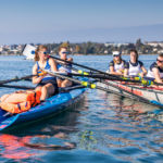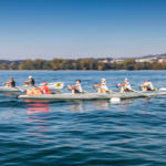 Le CAV aimant le Léman sous toutes ses formes, cinq équipages veveysans y ont pris part: deux équipages juniors hommes, deux équipages juniors filles et un équipage féminin de l’aviron défi-loisir. Malgré un briefing officiel sur le déroulement de la course suivi d’un résumé officieux du briefing officiel, les rameurs ont été challengés par l’aspect tactique et technique de la course avec son départ à heure fixe entre deux frites, ses virages, ses bouées de différentes couleurs, ses dépassements et ses collisions. Finalement, c’était peut-être mieux pour une première fois qu’il n’y ait pas de vague, ça aurait encore complexifié le tout.