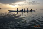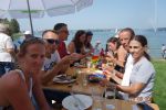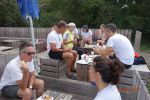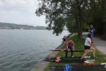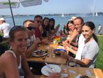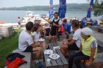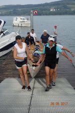 Un Grand brunch et pause bienvenue au km 21 à Steckborn nous redonnent du courage pour le retour sous le soleil. Le trafic de bateaux moteur augmente fortement et les vagues se creusent: Diabol’eau passe bien, mais le barreur est arrosé ! Après 4h30 d’effort(s) nous cessons de jouer sur la frontière et retrouvons Kreuzlingen et un bel accueil avec un repas bienvenu. Retour sans histoire.