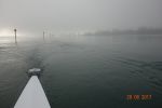 La deuxième journée a commencé tôt avec un lever de soleil sur le lac alémanique qui ressemblait à un coucher de soleil sur le Léman. À l’aller, la lumière du lac était d’une beauté rayonnante, presque aucun bateau ne troublait notre expédition, le soleil se levait gentiment avec un sourire resplendissant. Le départ bien organisé nous donnait envie de plonger les pieds, il faisait doux et nous sommes partis… à mi-chemin, en admirant l’Allemagne, nous sommes tombés dans une faune des cygnes qui paraissait nous attendre pour nous recevoir. Cette scène sur l’Untersee dans la brume nous rappelait au Lac de Cygnes. Quel passage poétique qui pour de plus passait dans le chenal « Schwanenhals » pour éviter les zones d’eaux peu profondes.