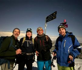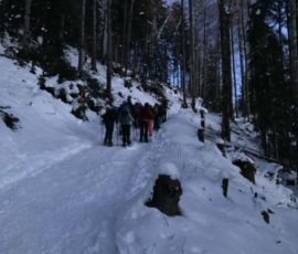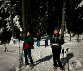 Le moment venu de la descente, les intrépides optèrent pour les joies de la vitesse en bob, les autres pour une marche méditative, les yeux rivés au ciel et les pieds bien ancrés dans la neige fraîche, quelques raquettes ayant rendu l’âme !