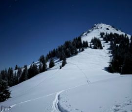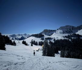 La montée est techniquement facile mais le sentier qui serpente à travers la forêt est raide (430 mètres de dénivelé). Alors on parle peu, on écoute les sons de la forêt, on guette les chamois qui se laisseraient surprendre, on lève les yeux vers le ciel étoilé à la recherche de la Grande Ourse ou d’Orion, et on admire, à l’approche du sommet, la majestueuse Dent de Lys.