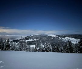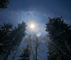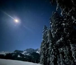 La nature n’a pas sa pareille pour nous surprendre, c’est fabuleux ! Car si la neige était attendue, le clair de lune et le ciel étoilé l’étaient bien moins.