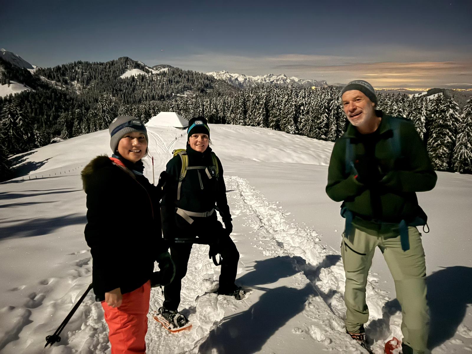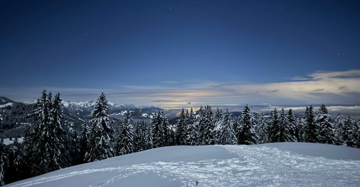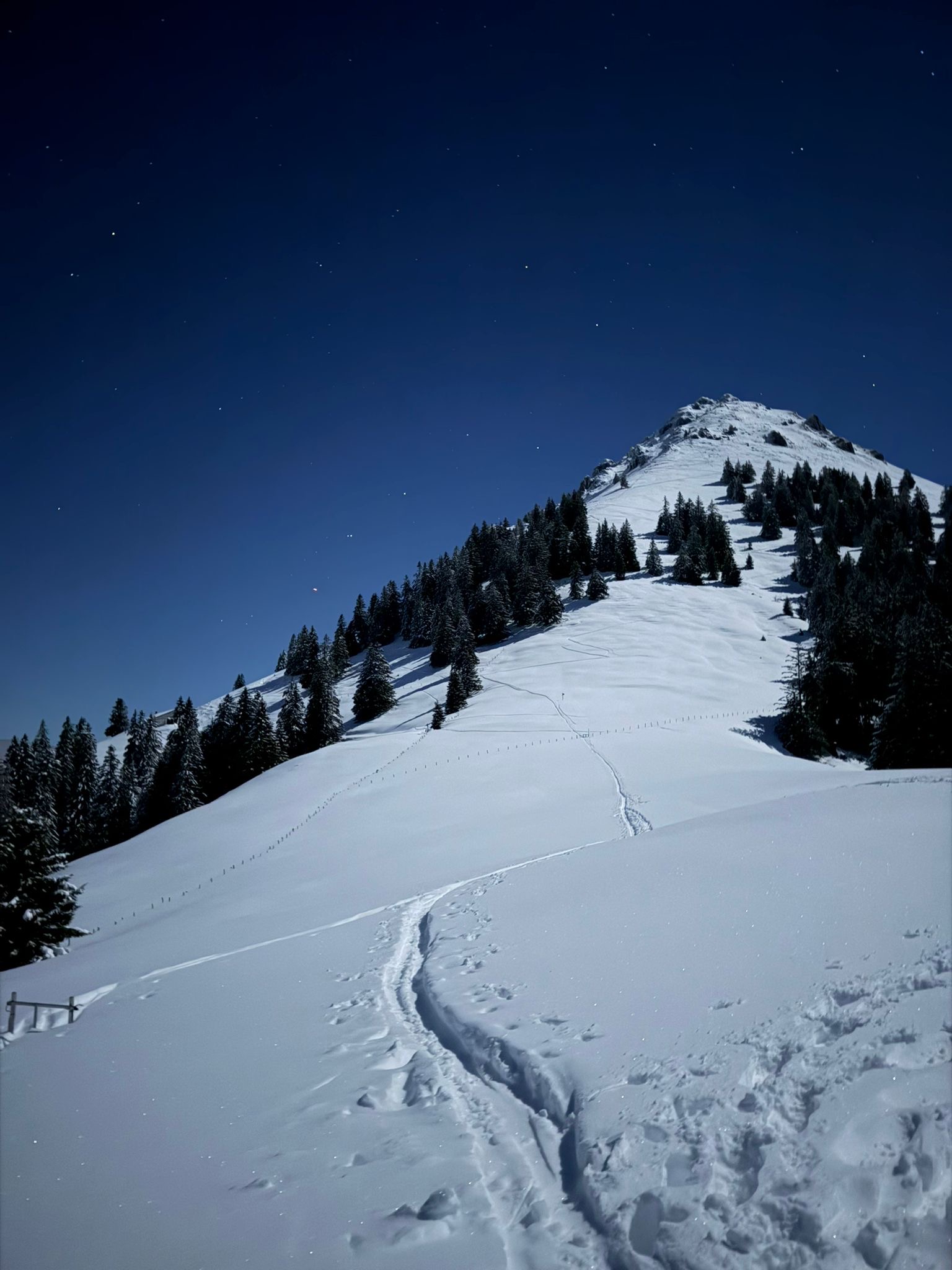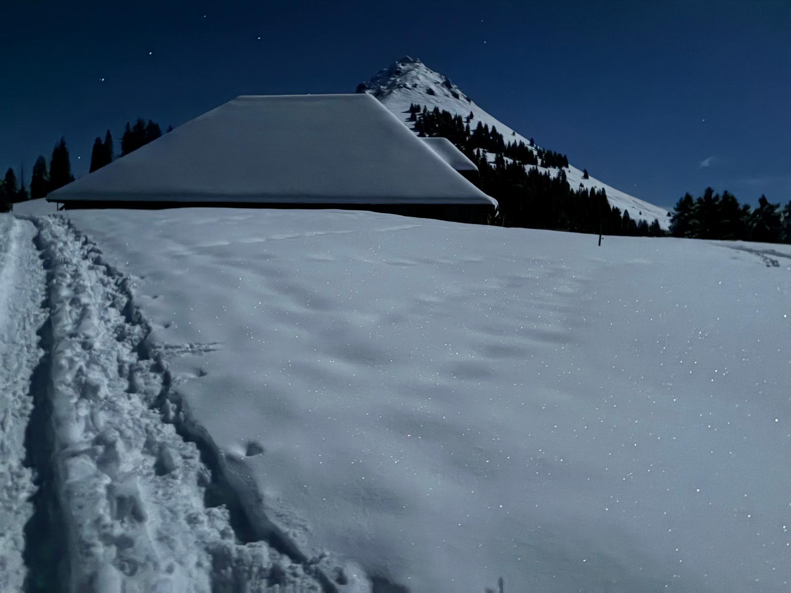 La montée est techniquement facile mais le sentier qui serpente à travers la forêt est raide (430 mètres de dénivelé). Alors on parle peu, on écoute les sons de la forêt, on guette les chamois qui se laisseraient surprendre, on lève les yeux vers le ciel étoilé à la recherche de la Grande Ourse ou d’Orion, et on admire, à l’approche du sommet, la majestueuse Dent de Lys.