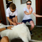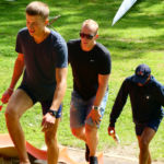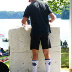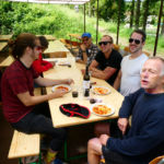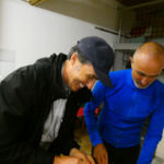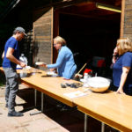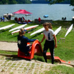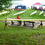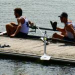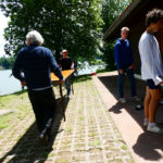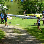 Tous les compétiteurs, entraîneurs et autres VIP étaient sur le pont ce weekend pour aider, porter, installer, cuisiner, baliser, ranger, nettoyer, et … ramer, quand même! Malgré le temps frais, les organisateurs (CAV) ont eu chaud à deux reprises: une première lorsque la tempête s’est abattue sur le bassin et le parc à bateaux samedi soir: mais aucun dégât ! Le deuxième coup de chaud a eu lieu le dimanche matin, lorsque le bateau de la police du lac s’est pointé; c’est pas qu’on n’est pas en règle, bien entendu, mais bon… En fait, ces braves gens nous ont fait une visite de courtoisie, très sympa. Comme quoi… A signaler que quatre jours après l’assemblée d’été, GCR a de nouveau frappé, avec son équipe de cuistots du CAVL venue tout droit du Bouveret pour nourrir l’aviron romand.