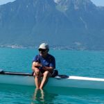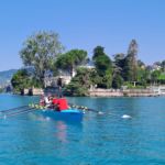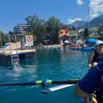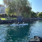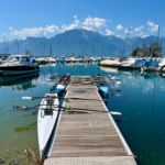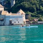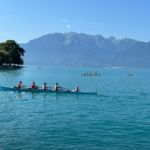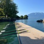 Deux yolettes et un double large ont ainsi pu être constitués au départ de Vevey, destination Chillon ! Après une première halte devant la fourchette pour corriger quelques réglages, l’occasion aussi pour certains de faire une petite trempette de pieds rafraîchissante, une deuxième s’imposait à la place du Marché de Montreux, en cette période de Festival, dans le but de voir le côté pile de la fameuse « Scène du Lac »!