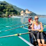Au retour, nous avions prévu de nous arrêter discrètement au ponton de Clarens afin de changer l’équipage du double large. Mais au moment de débarquer, quelle surprise de constater que le club de Montreux était en train de festoyer autour d’un apéro ! Après un accueil chaleureux et des échanges amicaux, nous avons regagné sobrement nos embarcations, avant de faire une nouvelle pause devant le chalet de Freddie Mercury, histoire de rester dans l’ambiance du Festival !