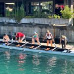 C’est ainsi que ce samedi, par une belle journée d’été et un lac relativement calme (on n’y croyait plus !), le CAV accueillait sept rameurs et rameuses venant respectivement d’Estavayer, de Neuchâtel, du Bouveret, de Fribourg et de Morat.