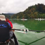 Point GPS: restaurant L’Unique! Nous voici devant un beau lac calme, avec une fine couche de brume qui préserve l’intimité des oiseaux qui sont encore au stade de faire leur toilette matinale. Après quelques coups de clé de 10, voici les Mikad’eau, Diabol’eau, Angoisse, Léman et Hélios prêts à fendre les flots. Pour les rameurs, un petit thé, café et quelques délicieux cantucci préparés par Marie-Josée.
