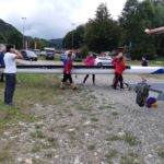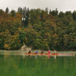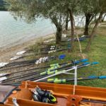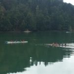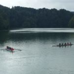 Point GPS: restaurant L’Unique! Nous voici devant un beau lac calme, avec une fine couche de brume qui préserve l’intimité des oiseaux qui sont encore au stade de faire leur toilette matinale. Après quelques coups de clé de 10, voici les Mikad’eau, Diabol’eau, Angoisse, Léman et Hélios prêts à fendre les flots. Pour les rameurs, un petit thé, café et quelques délicieux cantucci préparés par Marie-Josée.