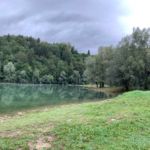 Ensuite, demi-tour en direction du camping, je maîtrise à ce moment peut-être un peu mieux la technique, mais mon manque d’entraînement se fait sentir… nous sommes encore les derniers! Le lac, lui, est toujours parfait!
