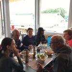 À la plage du camping, l’accostage se fait en douceur grâce à l’entraide de tous. Mon estomac gargouille et est très heureux de rencontrer la Buvette du Lac où les frites sont magnifiques, délicieuses et nombreuses (parole de Belge)! Une petite blanche du Fou du Roi vient apaiser mes courbatures naissantes pendant que certains se régalent d’une croûte aux Chanterelles, d’autres de burgers et moi une salade incroyablement garnie de chanterelles et lardons.