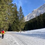 De retour sur l’itinéraire enneigé, nous slalomions entre les sapins, serrés et bruissants, agités par le vent. Les vestes étaient fermées, les bonnets vissés sur la tête, les gants protégeaient nos mains s’activant sur nos bâtons. Au sortir de la forêt, un nouveau détour s’imposa. Tantôt nos raquettes foulaient l’herbe soyeuse, tantôt elles crissaient sur la neige qui resserrait ses grains avec le froid naissant.