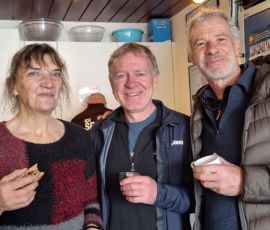 Au retour, le réputé vin chaud de Pierre ainsi que son « calin » nous ont bien vite revigoré! Sans oublier les nombreux et excellents accompagnements salés et sucrés apportés par les Cavistes.