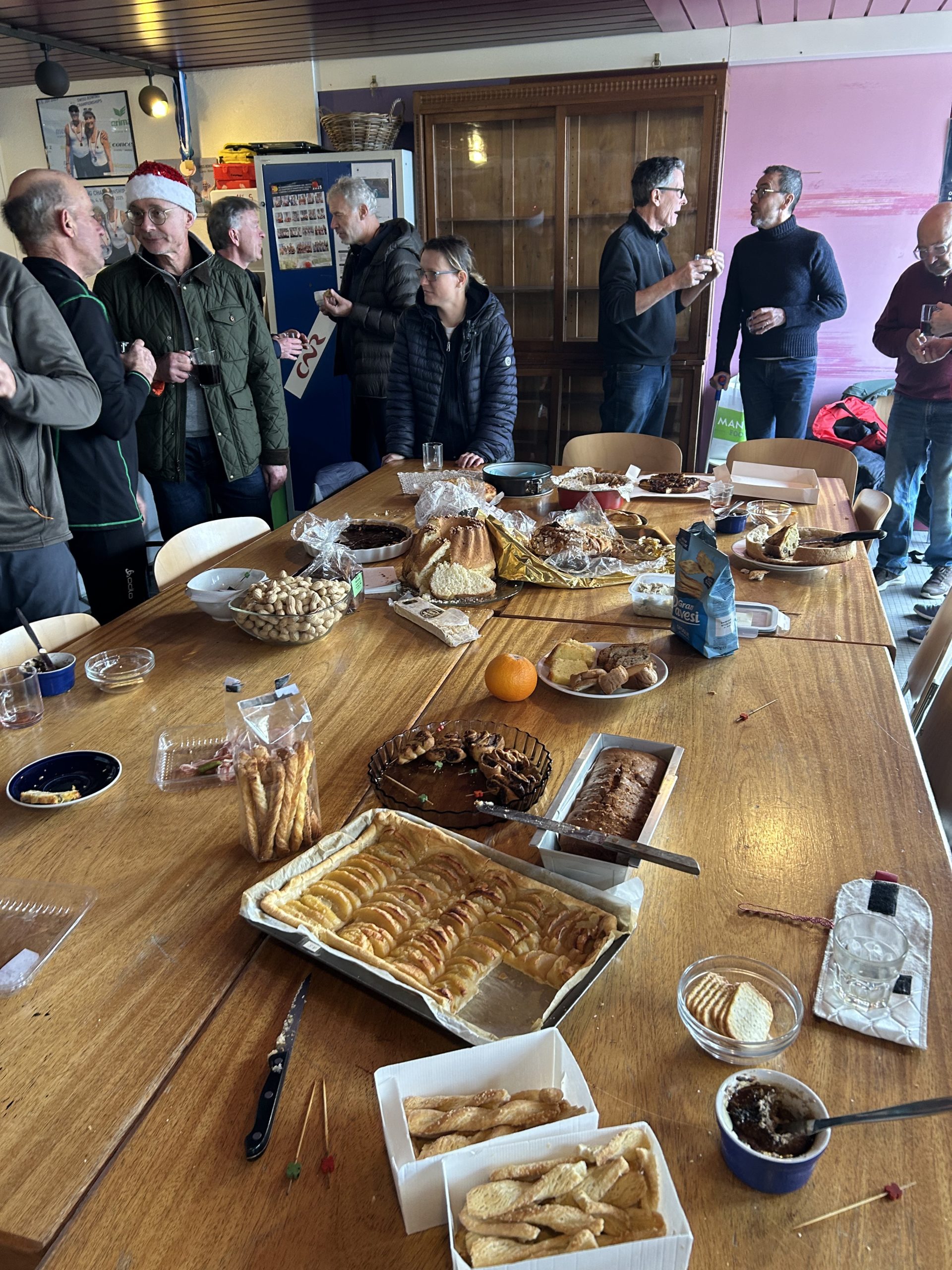 Au retour, le réputé vin chaud de Pierre ainsi que son « calin » nous ont bien vite revigoré! Sans oublier les nombreux et excellents accompagnements salés et sucrés apportés par les Cavistes.