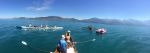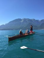 Eh oui, de retour d’une magnifique sortie dans la lumière du matin, nous sommes tombées sur les 3 embarcations qui étaient partance pour la sortie gastronomique à St Gingolph. Un des bateaux était en quête de son cinquième élément! On nous a approchées, on a sorti les arguments implacables «y a un verre de champagne au milieu du lac»… Il n’y a pas eu besoin de trop insister. Ni une ni deux, me v’là partie pour de nouvelles aventures.