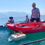 - 11h30 arrivée à St-Gingolph, où nous sortirons les bateaux de l’eau et trouverons un coin pour nous changer. (Prévoir des habits pour aller au restaurant, de préférence dans un sac étanche; ils pourront être chargés dans le canot à moteur qui nous accompagne)