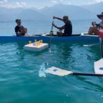 Si les organisateurs et barreurs ont honoré par le menu «gastro» à 2 entrées – plat, fromage et dessert – les rameurs ont opté pour la version quelque peu allégé car ils se voyaient déjà «la peau du ventre bien tendue» pour le retour. L’apéro flottant cidre-flûtes au milieu du lac est juste un moment magique!
