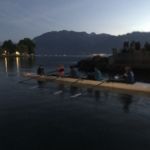 Arrivés à l’île, la question se pose: aller jusqu’à Montreux? Il parait que c’est joli parce que c’est en pente quand on rame… hein quoi? le lac est en pente? quels rires sur les bateaux, les discussions n’ont plus ni queue ni tête. C’est parti pour rendre visite à Freddie. En chemin au loin, les rameurs voient des lumières élevées. Un bateau de la CGN? celui de 23h peut-être? Bizarre autant qu’étrange. Que c’est beau Montreux. Peut-être qu’on peut se tourner un peu comme ça tout le monde peut voir la lune… «Qui veut un coup de blanc» lance quelqu’un sur un bateau. Tout le monde évidemment, aller santé l’équipe! Encore un verre? Pas certaine, sinon les bateaux n’iront plus droit.