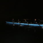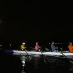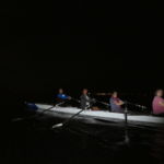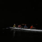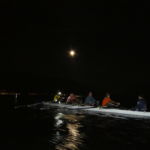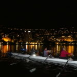 Le lac reste calme pour les rameurs, les rires vont bon train sur les bateaux. Le défi des barreuses ce soir consiste à éviter les autres bateaux et distinguer au loin les divers poteaux qui parsèment le lac. Même s’il nous semble connaitre les lieux, de nuit c’est une autre histoire. La lune se reflète joliment dans l’eau. Dans son axe lumineux, tout est visible.