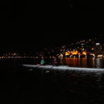 Mais où est donc passé le double? Sans lumière au bout des bateaux, difficile de les repérer. Deux barreuses sont équipées de lumière dans le dos, tandis que la troisième a perdu sa lanterne au fond du lac… les poissons verront de la lumière un petit moment.